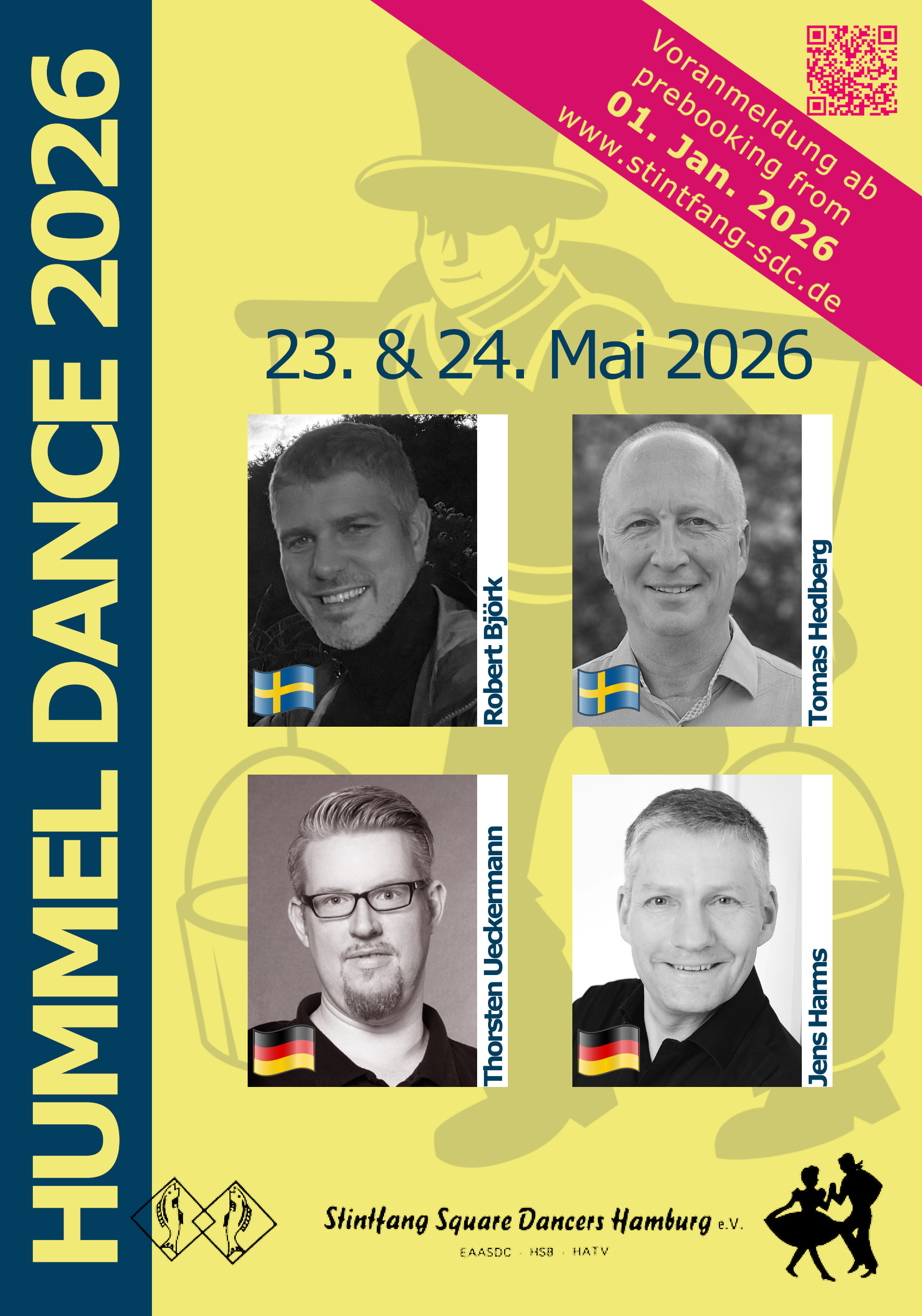 Das Besondere am Square Dance ist, dass kein Tanz jemals dem anderen gleicht: Die Tänzerinnen Tänzer beherrschen eine Reihe von festgelegten Figuren, die dann zur Musik vom Tanzleiter, dem sog. "Caller", zu immer neuen und überraschenden Abfolgen und Formationen zusammengefügt werden. Eine vorgeschriebene Reihenfolge gibt es nicht. Erlaubt ist alles, was den Tänzern Spaß macht. [mehr...]